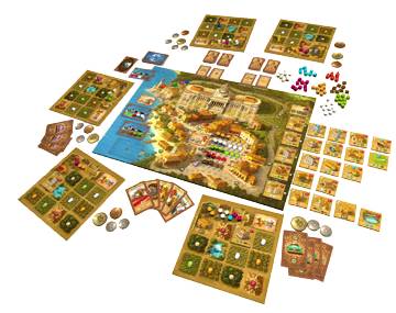 Baustoffsteine, 2 beliebige Rohstoffsteine sowie einen Satz Personenkarten bekommen die Spieler jeweils noch... ganz schön viel Arbeit, gell? :) ... aber es lohnt sich ja.